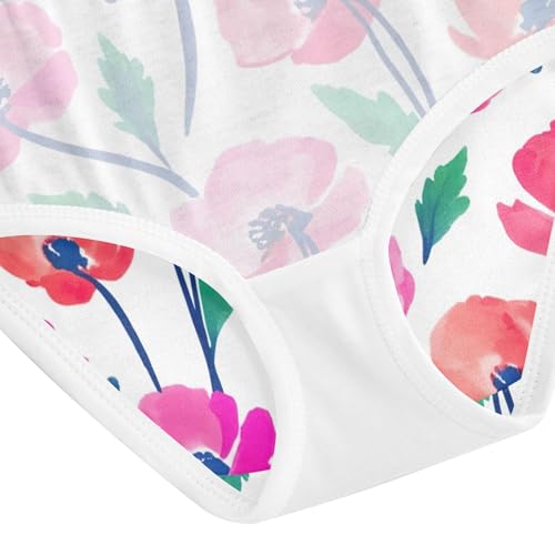 Girls Underwear Toddlers 2t Cotton Little Girl Panties Flower Briefs Underpants Watercolor Poppy Flowers Pink 4