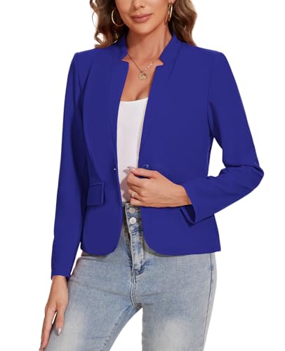 HOT ! MINTLIMIT Blazers for Women Notched Collar One Button Jackets Lightweight Work Office Long Sleeve Blazer Suit Cardigan with Pockets,S,Royal Blue
