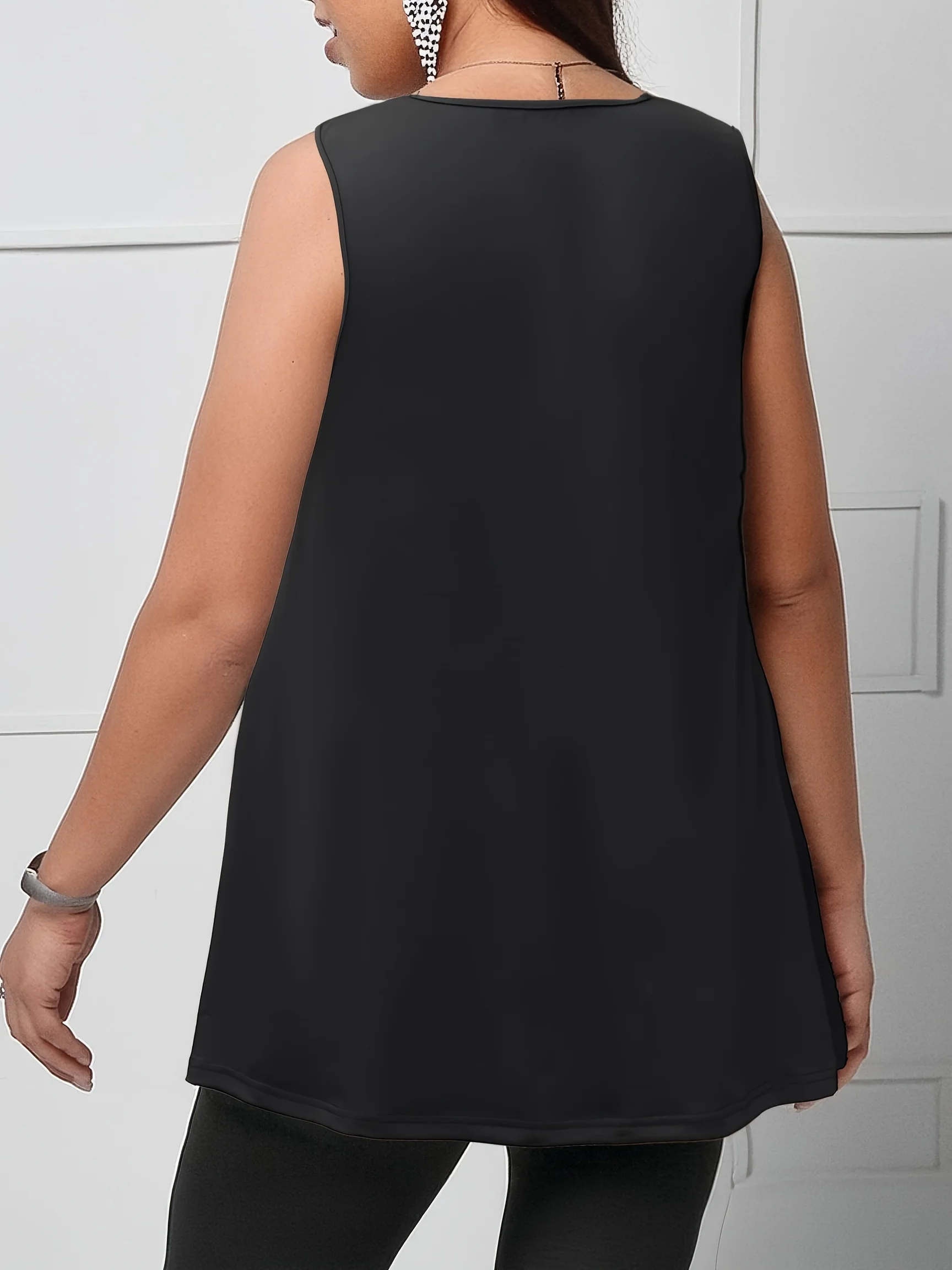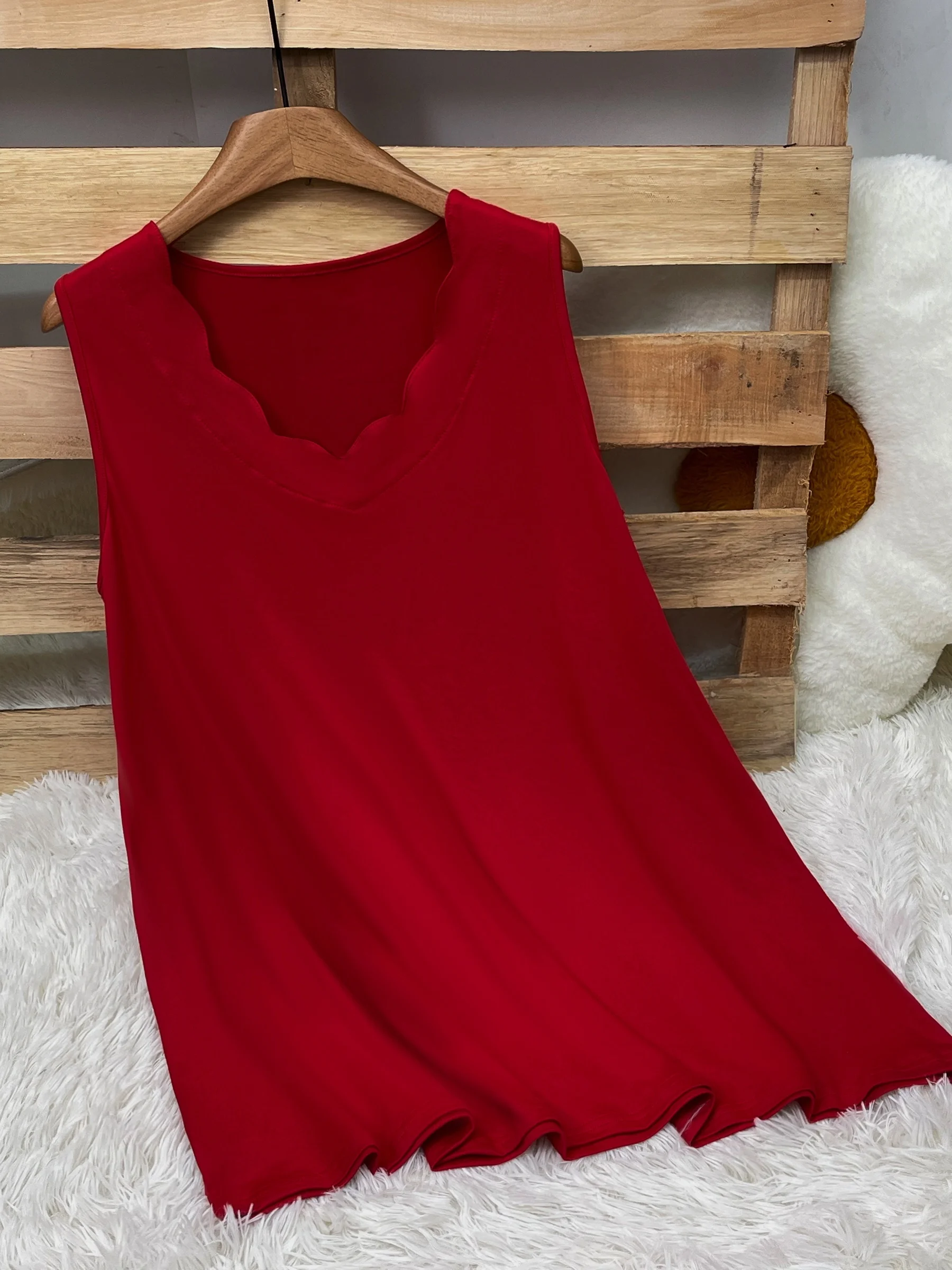 SpecificationsChoice: YesElasticity: Slight StretchFabric Type: Polyester Blended Description:Elevate your summer wardrobe with our Chic Plus Size Sleeveless Scalloped Hem Top Designed for both comfort and style, this top features a flattering A-line silhouette that drapes beautifully over your curves. The scalloped neckline adds a touch of femininity and elegance, making it perfect for both casual outings and dressier occasions.Crafted from lightweight, breathable fabric, this top ensures you stay cool and comfortable all day long. Pair it with your favorite jeans or shorts for an effortlessly chic look. Whether you're heading to a brunch date or a beachside stroll, this versatile top is a must-have addition to your collection.Key Features:Stylish Scalloped Neckline: Adds a unique and feminine touch.Flattering A-line Silhouette: Perfectly drapes over curves for a comfortable fit.Sleeveless Design: Ideal for warm weather and easy layering.High-Quality Fabric: Lightweight, breathable, and soft against the skin.Versatile Styling: Easily pairs with jeans, shorts, or skirts for various occasions.Product Details:Material: 100% PolyesterColor: RedSizes Available: Plus sizesCare Instructions: Machine wash cold, gentle cycle, tumble dry lowUpgrade your summer style with this charming scalloped hem top and make a statement wherever you go!