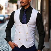 More information about Men's Suit Vest Waistcoat Wedding Party Evening Wear Casual Active Vintage Spring Fall Polyester Adjustable Striped Double Breasted Slim White Vest