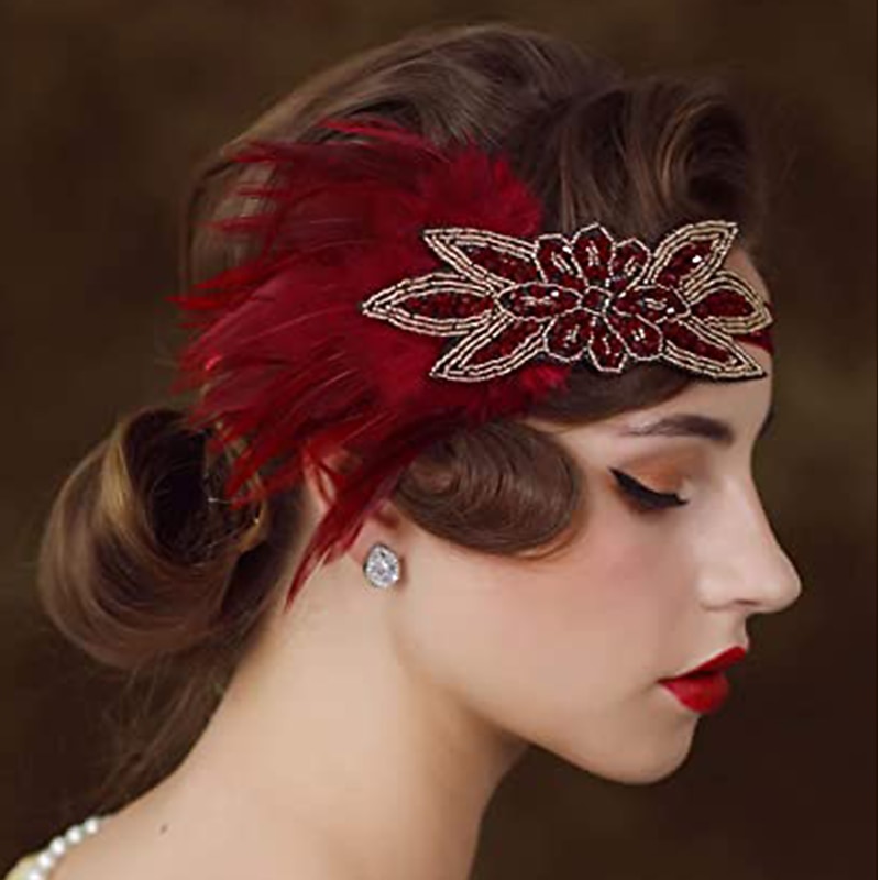 1920s Flapper Feather Headband 20s Sequined Showgirl Headpiece Gatsby Hair Accessories for Women 12