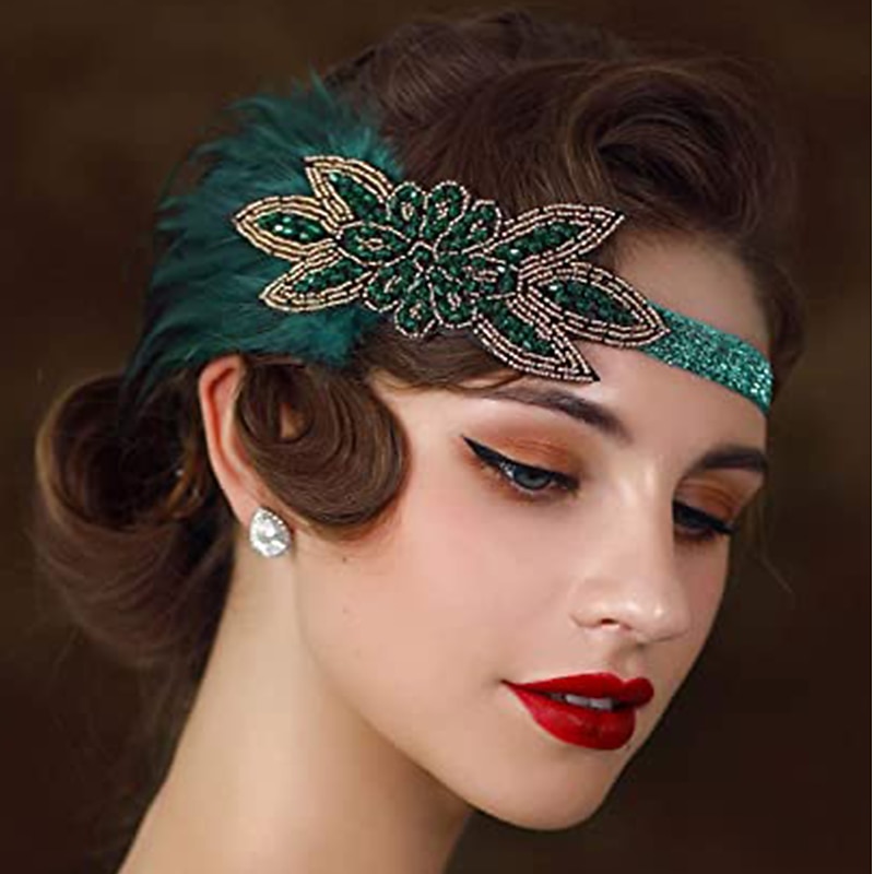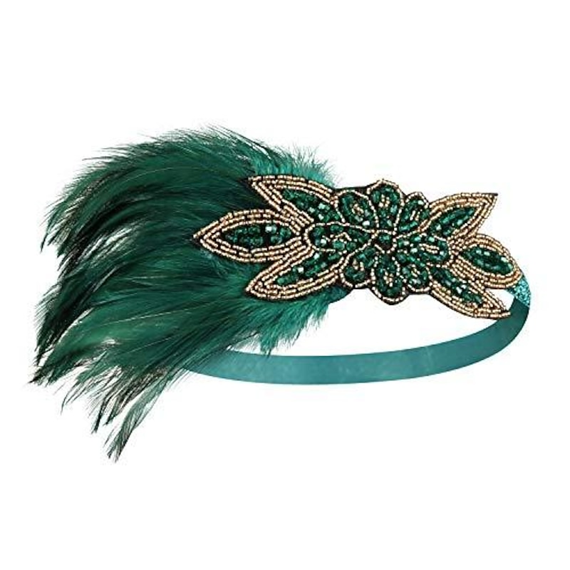 Highlights 【 Material】High quality beaded, feather and elastic ribbon. 【Size】The rhinestone decoration is about: 14.5*5cm (5.7*1.97 inch); Feather size: 17*20cm (6.69*7.87 inch); Elastic band perimeter size: 50*1.5cm (19.68*0.59 inch), which can stretch about 8cm (3.15 inch). 【Design】 The fabulous flapper headband features a gorgeous set of dark green coque bursting out the side of a beautiful feather and beaded applique. Sitting on a sparkling dark green stretch hairband, this piece from SWEETV is speakeasy stunning! 【Feature】Retro design with delicate handcraft compliments a much more comfortable and pleasant wearing experience. A stunning great gatsby party costume hair accessories, 1920s headband with feather, extremely impressive and attractive. 【Any Occasion Accessory】 Ideal for Cocktail, Prom, Evening party, Christmas, Dancing, 1920s Gatsby Party, Art Deco party,1920's Wedding.It also a great gift for ladies!