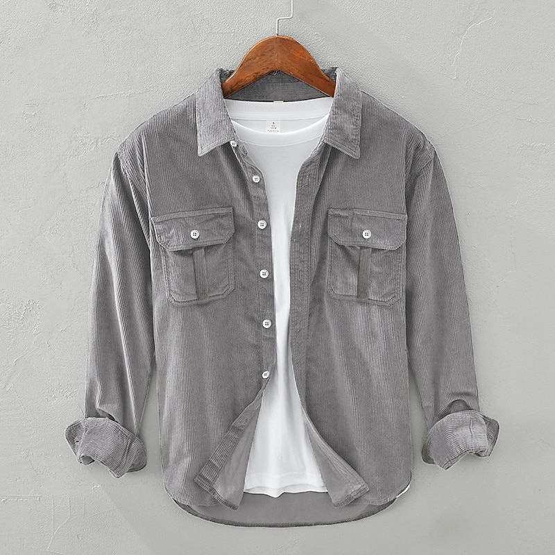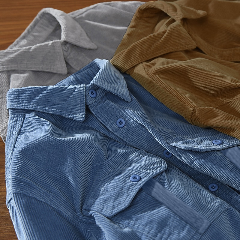 More information about Men's Corduroy Shirt Shirt Jacket Overshirt Plain Street Daily Yellow Blue Gray Long Sleeve Turndown Fall Winter Clothing Apparel Button-Down