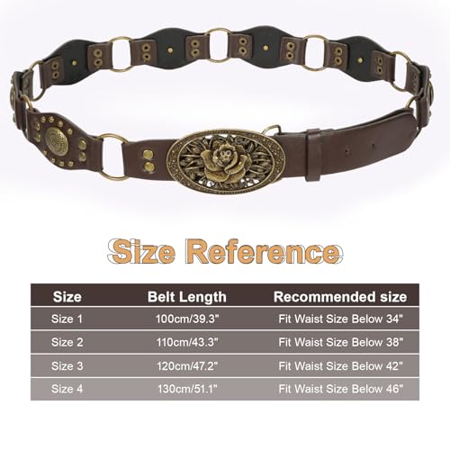 SUOSDEY Western Leather Belts for Women Vintage Cowgirl Rivets Belt for Jeans Dress 4