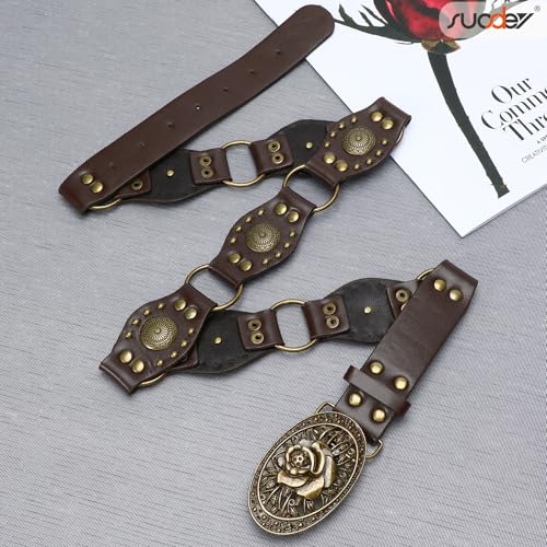 SUOSDEY Western Leather Belts for Women Vintage Cowgirl Rivets Belt for Jeans Dress 1