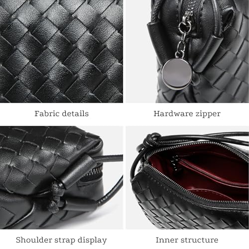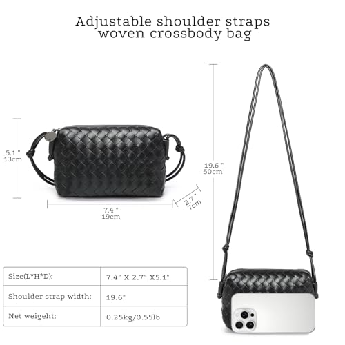 • CLASSIC WOVEN CROSSBODY BAG:This small woven crossbody bag was made of vegan leather,no animals are harmed,It's lightweight, compact and soft with classic woven design,easily matching dresses,skirts,trench coats and athleisure wear.