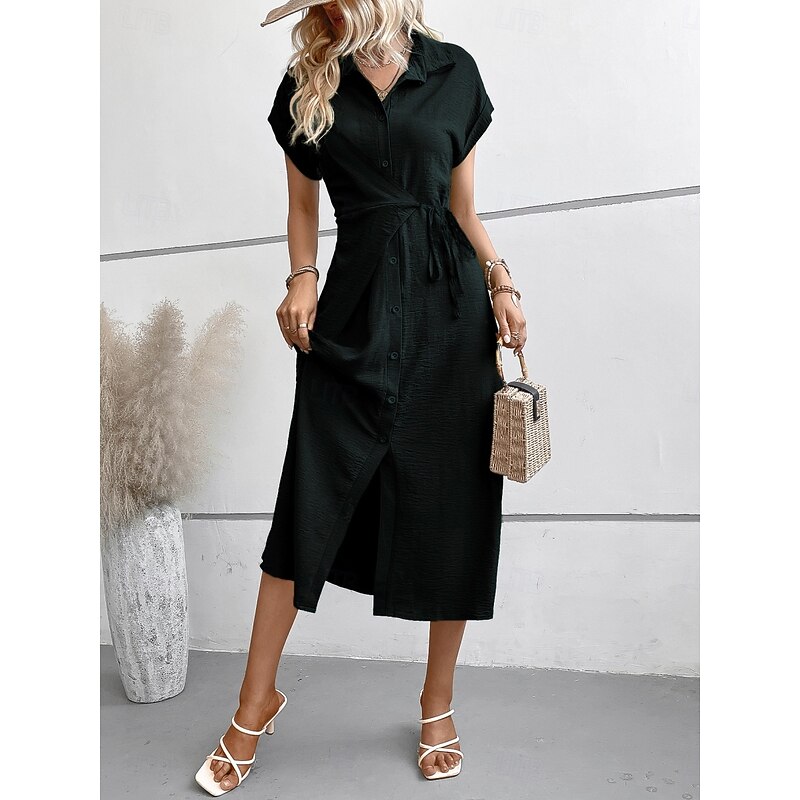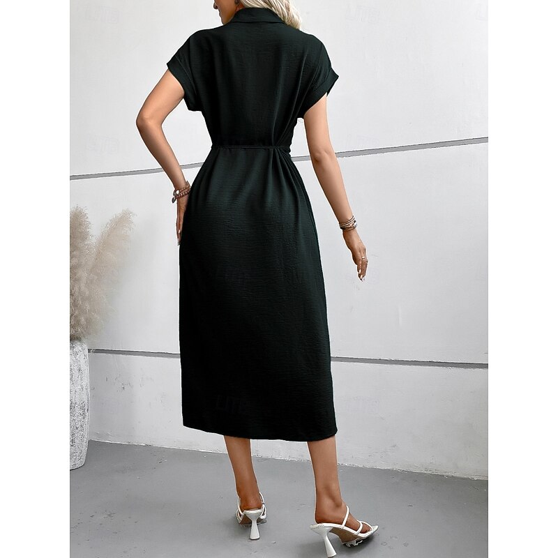 More information about Women's Midi Dress Shirt Dress Casual Dress Wrap Dress Stylish Basic Casual Vacation Daily Regular Fit Plain Short Sleeve Shirt Collar Black Green Summer Spring