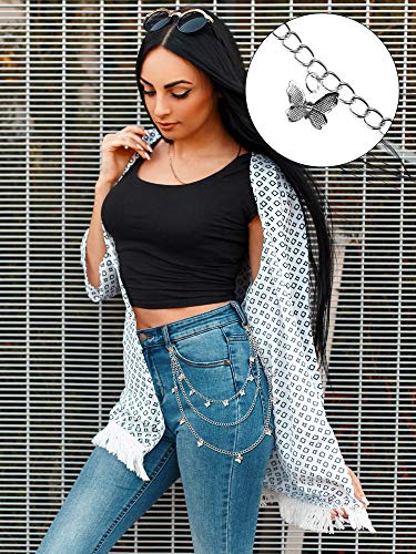 Hicarer 6 Pcs Jeans Chain Belt Waist Pocket Pants Chains Y2k Belt Punk Accessories Body Belly Goth Chain for Women Men 4