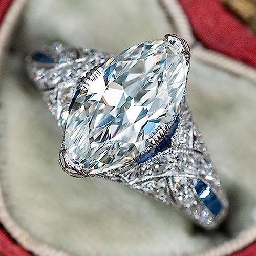 Hsitgexf Vintage Court Style Marquise & Baguette Cut Cubic Zirconia Simulated Diamond & CZ Simulated Ring White Sapphire Wavy Channel Engagement Ring for Women Size 6-10 7