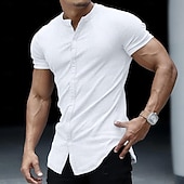 More information about Men's Shirt T Shirt Cardigan Tee Top Short Sleeves Crew Neck Summer Plain Fashion Designer Basic Buttons Vacation Street Going out White Light Grey Top Tee for Men