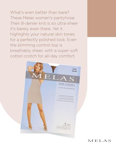 HOT ! Melas Women's Ultra-Sheer 8 Denier Bare Control Top Pantyhose Suntan Large