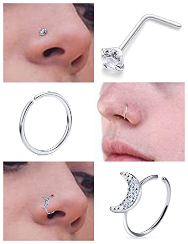 • [Product Size]--Nose Rings Gauge Size:18G (1.0mm),Stud Piercing, Bar Length:7mm, CZ Diameter:2mm,Nose Rings Hoops Inner Diameter:8mmm.Color:Siver.General Size for Wearing, Suit both Men and Women.