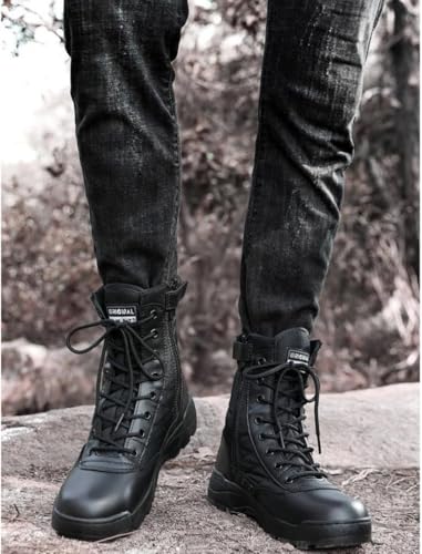 • 1. Enhanced Protection and Convenience: Our men's and women's tactical work boots feature an ankle-high protective design that wraps and supports your ankles, providing extra security during any intense activity. The side zipper is equipped with a hook-and-loop closure for easy on and off, ensuring hassle-free use.