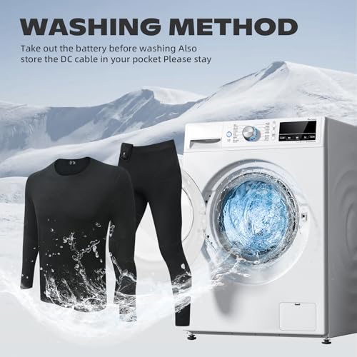 • 【Soft& Breathable Fabric Thermal Clothing Set】The new electric heated thermal underwear is made of warmer, breathable and cozy material. The elasticized waist design is lightweight and warm, ensuring that you don't lose too much heat and enjoy a cozy warmth. The thermal clothing set includes: 1* heated long sleeve long john set (top + pants), 3 * 3.7v 10000 mAh Li-Po Battery, 3 * USB to Type-C cable, 1 * manual. Have it to keep you warm and cozy all winter long!