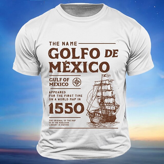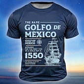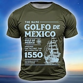 HOT ! Men's Short Sleeve Graphic T-Shirt | Gulf of Mexico 1550 Historical Map | Bodleian Library Ship Design