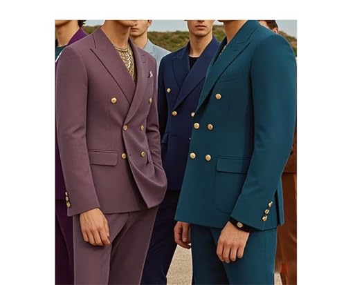 Men's Double Breasted Suit Blazer & Pants Set, Formal Wedding Party Business Outfit, Slim Fit Tuxedo 7