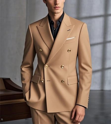 Men's Double Breasted Suit Blazer & Pants Set, Formal Wedding Party Business Outfit, Slim Fit Tuxedo 1