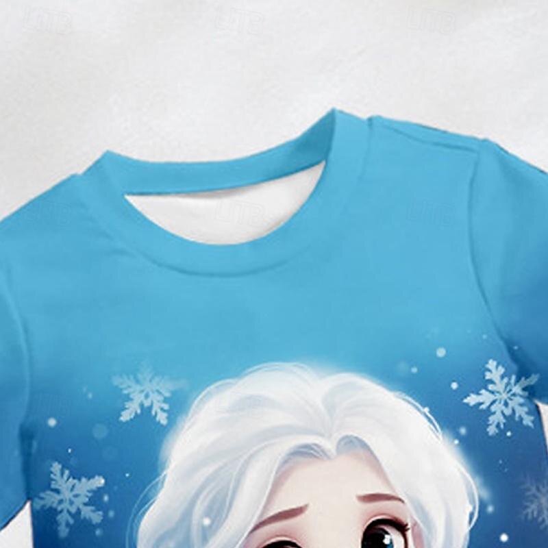 Girls' 3D Snowflake Princess Tee & Pants Pajama Sets Short Sleeve 3D Print Summer Active Fashion Cute Kids 3-12 Years Crew Neck Home Causal Indoor Regular Fit 5