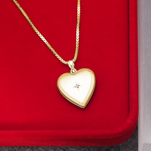 PicturesOnGold.com Yellow Gold Heart Photo Locket with Genuine Diamond in 14K Gold Filled or 14K Yellow Gold 7