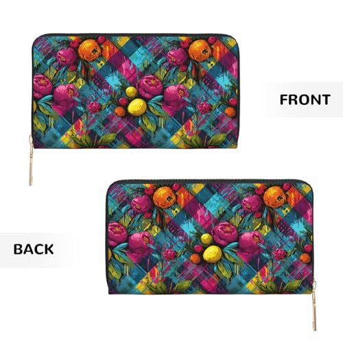 Tropical Fruits Print Wallet Women, Leather Bifold Multi Card Wallet, Long Purse Women's Wallets