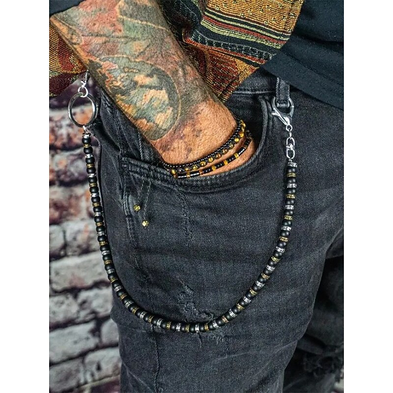 "Mens Beaded Trouser Chain - Vintage Goth Rock Style for Bikers, Punks and Street Fashion"
