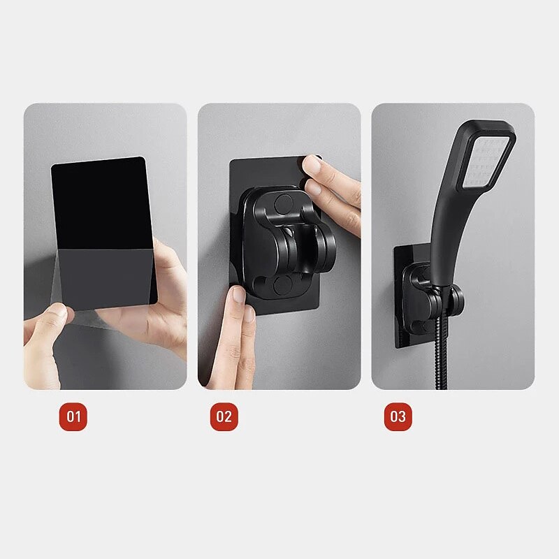 Shower Head Bracket No Drilling Holder, 360° Adjustable Without Drilling ABS Wall Bracket Replacement Waterproof Attachment for Bathroom 3
