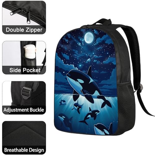 More information about Whale Kids Backpack Killer Whale Orcas in Galaxy School Bookbags Daypack Bag, Water Resistant Children Backpack for Elementary Junior High Girls Boys, 17 Inches, Beautiful Space Moonlight
