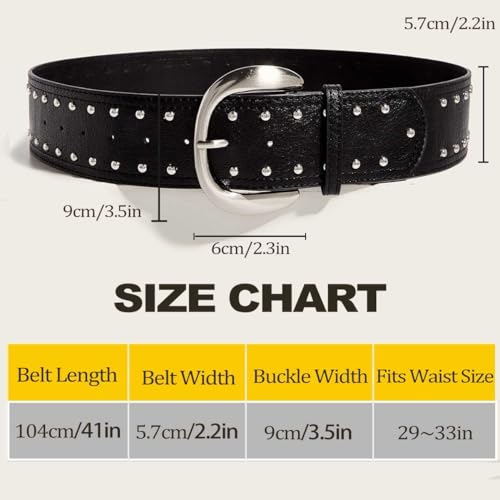 More information about Yalice Women's Thick Leather Belts Wide Western Cowgirls Belt for Jeans Dresses Rivet Chunky Belts with Metal Buckle
