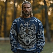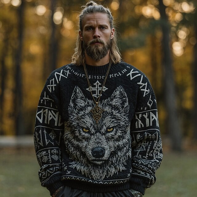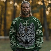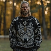 More information about Men's Animal Wolf Pullover Sweater Jumper Knitwear Crewneck Retro Vintage Casual Vacation Street Daily 3D Print Knitting Keep Warm Long Sleeve Spring Fall Winter Black Blue Green