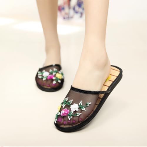 Chinese Floral Slippers,Women's Mesh Breathable Home Comfort Style Sandal,Suitable for most foot shapes 6