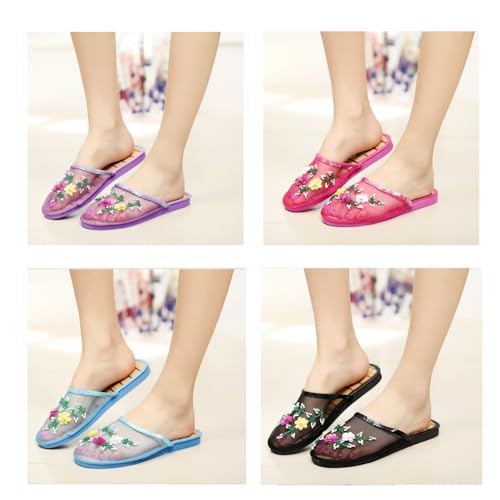 Chinese Floral Slippers,Women's Mesh Breathable Home Comfort Style Sandal,Suitable for most foot shapes 4