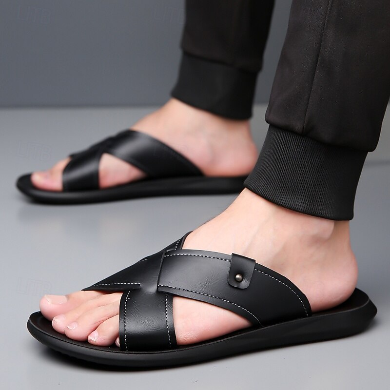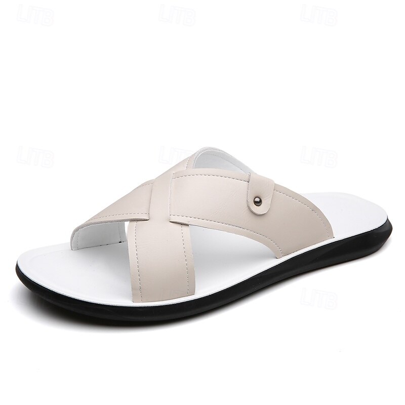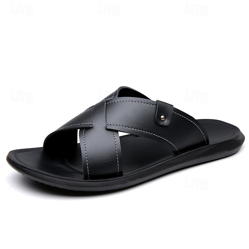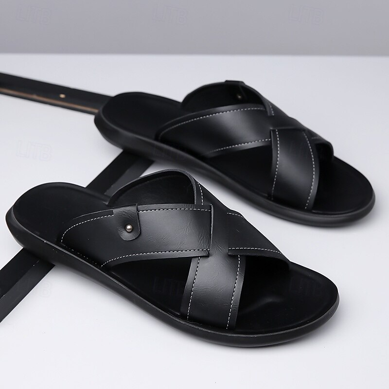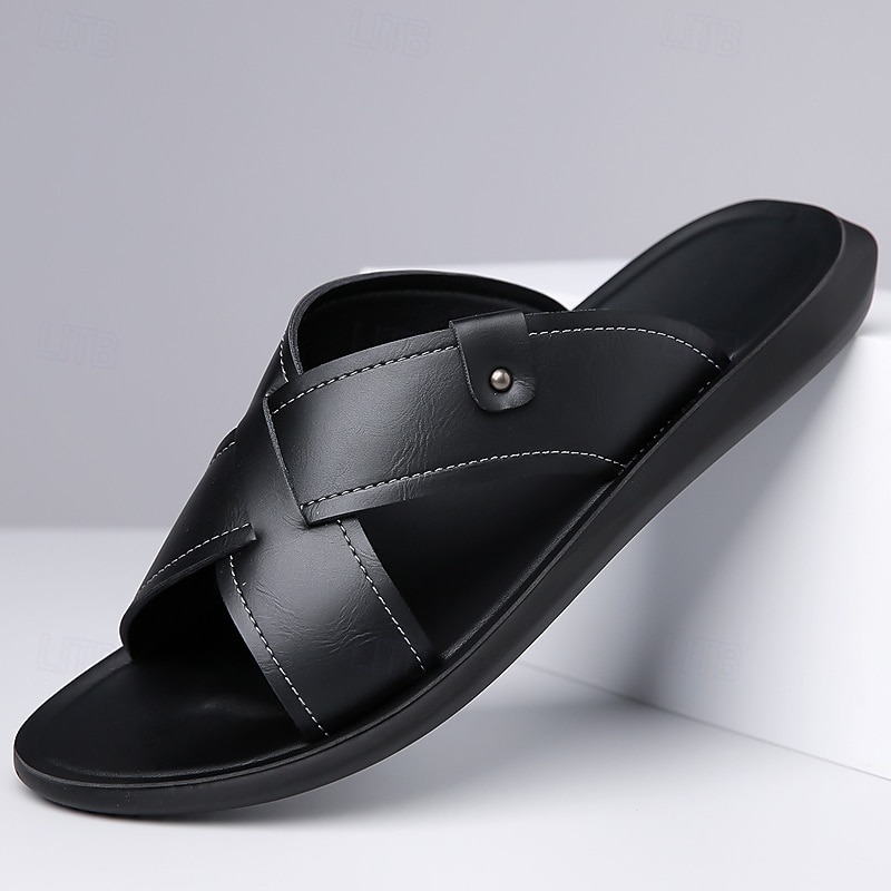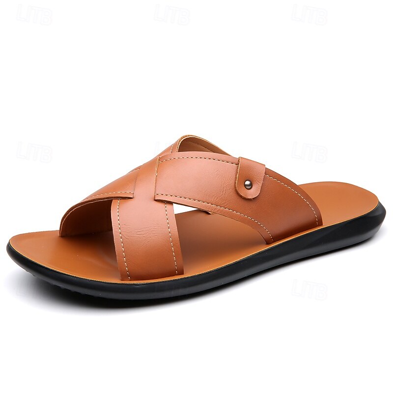 HOT ! Men's Tan Faux Leather Cross-Strap Sandals Comfortable Slip-On Design with Durable Rubber Sole Ideal for Casual Summer Beach and Outdoor Activities