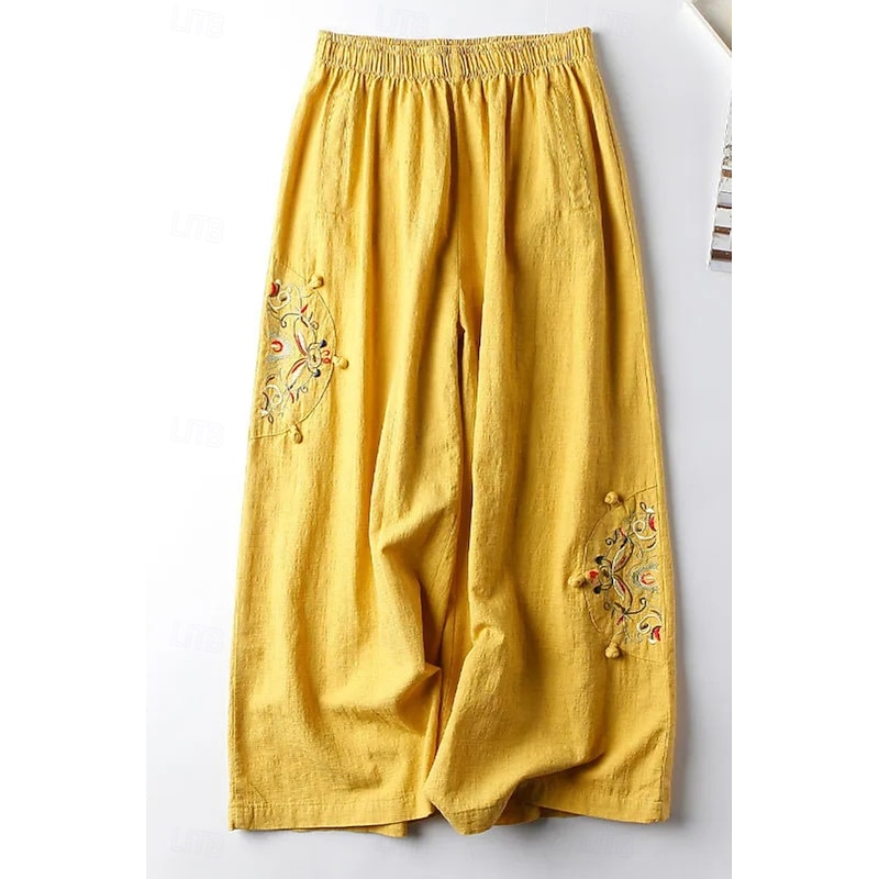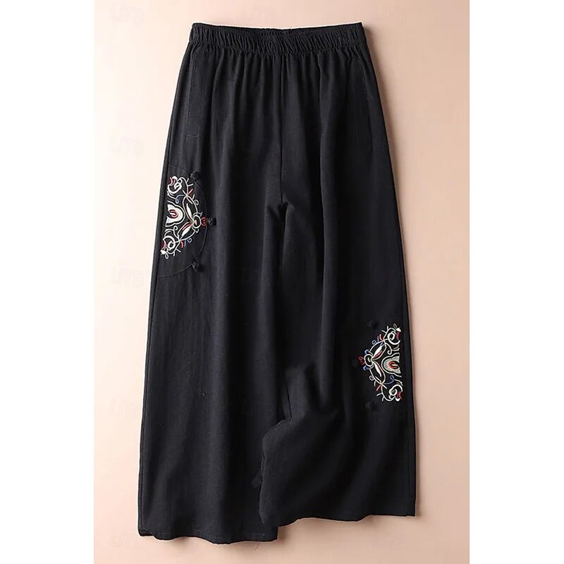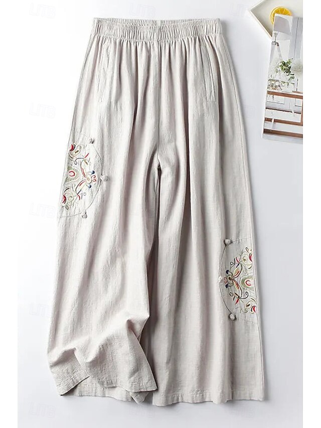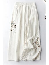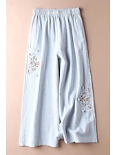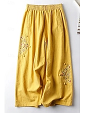 More information about Women's Cotton Linen Shorts Linen-Inspired Pants Cotton Linen Pants Fashion Streetwear Full Length Natural Geometic Embroidered Comfy Outdoor Street Going out Weekend Apricot Light Sky Blue Black