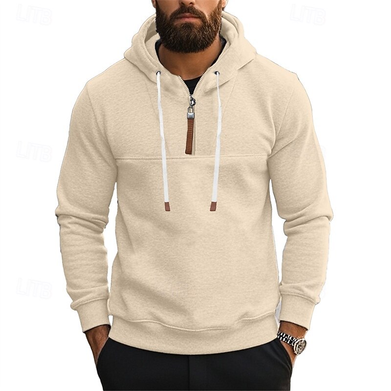 More information about Men's Sweatshirt Quarter Zip Sweatshirt Apricot Black White Wine Navy Blue Half Zip Plain Drawstring Sports & Outdoor Daily Holiday Polyester Streetwear Basic Casual Spring & Fall Clothing Apparel