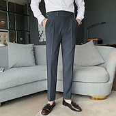 More information about Men's Graduation Dress Pants Trousers Pleated Pants Suit Pants Pocket High Rise Solid Color Comfort Soft Ankle-Length Daily Going out Elegant Vintage Black White High Waist
