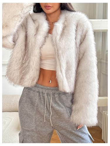More information about WDIRARA Women's Faux Fur Coat Open Front Long Sleeve Cropped Jacket Fuzzy Outerwear