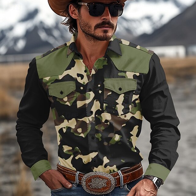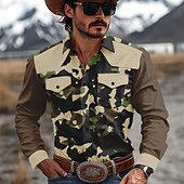 More information about Men's Camouflage Western Shirt Cowboy Shirt Long Sleeve Western Sports Outdoor Spring Fall Turndown Button Up 2 Pockets Green Beige