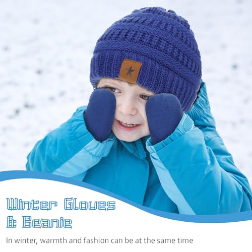 Cuffbow 5 Sets Kids Knit Hat Scarf Gloves Set Soft Warm Hats Winter Scarf Gloves Winter Accessories for Toddler Boys Girls 5