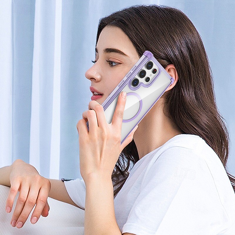 HOT ! Phone Case For Samsung Galaxy S24 S24 FE S23 Ultra Plus S22 Plus Ultra Back Cover Magnetic Support Wireless Charging Shockproof Retro PC