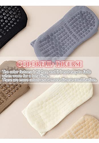 Pilates Socks for Women 5 Pairs - Non Slip Grip Socks with Terry Thick Cushioned Sole - Ideal for Yoga, Barre, Gym Workouts Sweat-absorbent Stockings Cotton 6