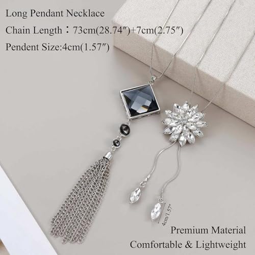 • Long Sweater Necklace Set: 6PCS Silver plated long pendant necklace a set, different popular styles including crystal pendant necklace, tassel pendant necklace and flower pendant necklace, beautiful necklace set well match with your different outfit, nice show your beauty at every moment.
