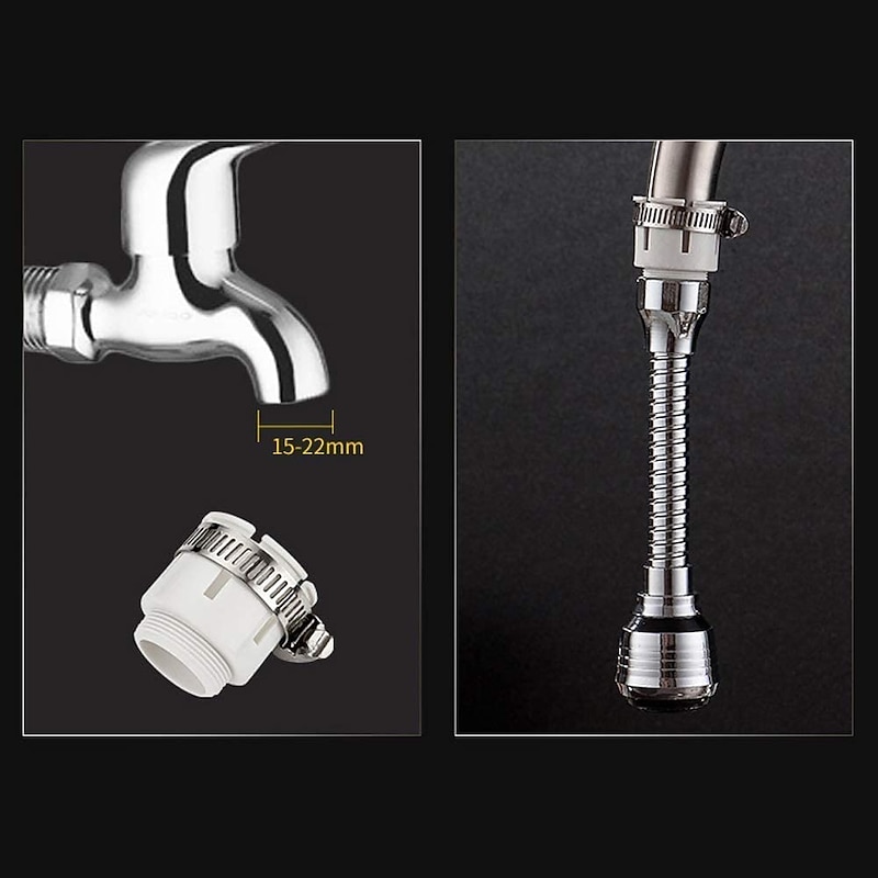 Highlights 360° free cleaning: the 360° rotating water tap extension kitchen ensures maximum freedom of movement in the sink area and the tap extension is very flexible, which makes cleaning easier. Water saving function: the mixing effect realises water savings by mixing air and water to create a gentle jet. With this tap attachment, the kitchen tap can be transformed into a sink shower nozzle to prevent splashes and effectively reduce tap water consumption by 40%, reducing your bills and saving water resources Joint shower: with the kitchen tap extension you can combine the tap with the sink hand shower to reduce the cleaning effort. The flexible hose allows for excellent adjustment of the nozzle and simplifies the cleaning of a 1 bowl sink or 2 bowl sink and large dishes. Water cleaning function: this kitchen tap is one of the indispensable kitchen accessories in the home. It uses a stainless steel filter seal that can retain solid impurities sometimes present in the water and prevent clogging of the head. Therefore, it also has the function of a tap water filter. Easy to install: it is suitable for most standard tap accessories and equipped with a universal adapter connector that is easy to install. Suitable for kitchen faucets, bathrooms, toilets, public health facilities, etc. It is an ideal product that can bring comfort to your life.
