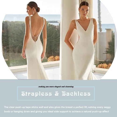 • Best Wardrobe Companion:Instant Breast Lift and totally transparent ,Perfect for backless/strapless dresses, t-shirts, halter tops, wedding gowns, sports bras, swimsuits. Friendly to A-D cups, the bra tape will lift and push up even the heaviest breasts to achieve the boob shape you want.