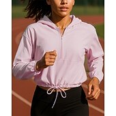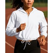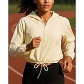 More information about Women's Hoodie Running Top Running Shirt Quarter Zip Long Sleeve Top Solid Colored Waterproof Sun Protection Windproof Quick Dry Tennis Golf Running Sportswear Activewear White Yellow Pink