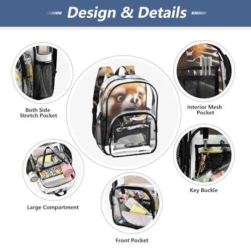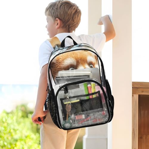 Red Panda Funny Clear Backpack, PVC Transparent Bag with Large Capacity for Boys, Girls, Men, Women, See Through Bookbag for School Work College Travel 5