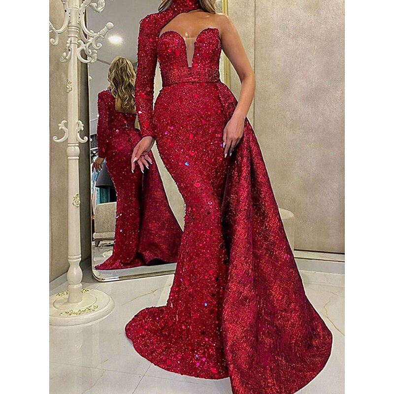 More information about A-Line Quinceanera Dresses Elegant Dress Wedding Wedding Guest Floor Length Long Sleeve One Shoulder Sequined Backless with Sequin