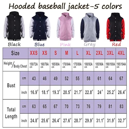 • ⚾【Women's Hooded Baseball Varsity Jacket Size-Your Choice】2XS-4XL,Please read the size chart in the product description carefully before placing an order. If you are looking for a loose jacket, we recommend purchasing a larger size. One size up is more casual than usual.