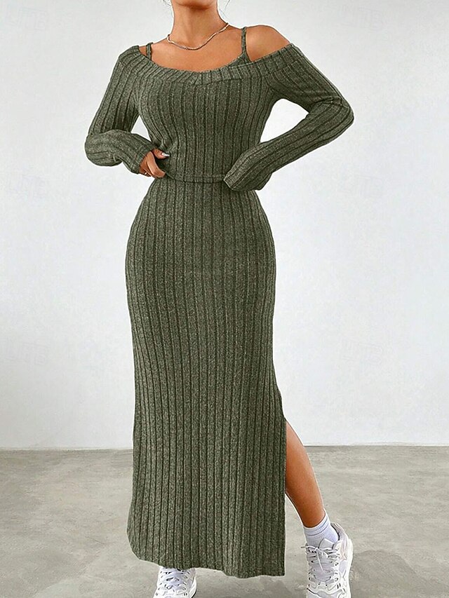 More information about Women's Midi Dress Dress Set Sheath Dress Fashion Modern Vacation Daily Weekend Regular Fit Plain Sleeveless Off Shoulder Army Green Spring Fall