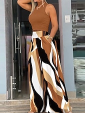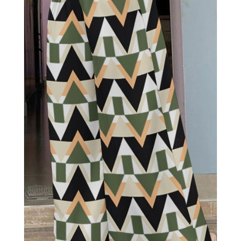 More information about Women's Wide Leg Slacks Streetwear Full Length Natural Geometry Pocket Elastic Waist Comfy Outdoor Street Holiday Daily Wear Earth Yellow Green Fall Regular Fit