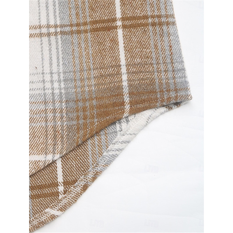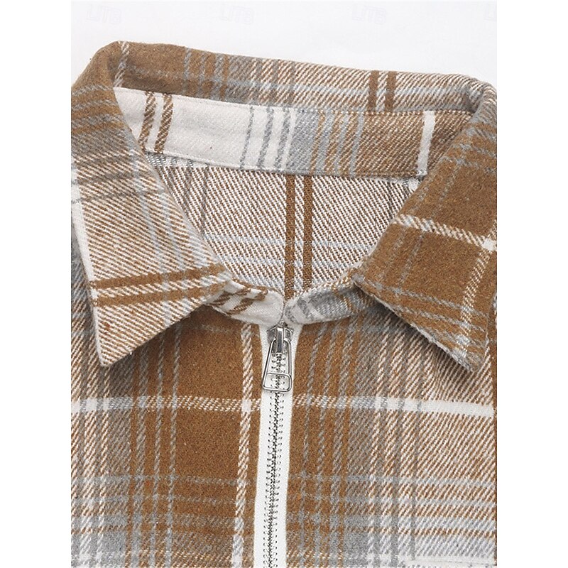 Highlights [Fabric & Design] : Crafted from a high-quality polyester fabric with a micro-elastic texture, this women's shirt blouse features a timeless plaid pattern in hues of khaki. The soft, brushed texture of the material offers both warmth and comfort, making it ideal for the fall and winter seasons. The blouse is enhanced by a modern half-zip front design, adding versatility to its classic aesthetic. A shirt collar and long sleeves with simple cuffs contribute to its laid-back elegance, while a single chest pocket introduces a functional yet stylish touch. [Fit & Style] : Designed for a relaxed fit, this blouse boasts a slightly curved hemline which facilitates effortless layering or a tidy tuck into trousers or jeans. Its basic and casual style makes it a versatile addition to any wardrobe, seamlessly fitting into both day-to-day routines and leisurely days at home. [Design Highlights] : The blouse's plaid pattern and zipper detail highlight its modern yet timeless appeal. The inclusion of a single chest pocket enhances its casual charm, while the micro-elastic fabric ensures comfort and ease of movement. [Occasions] : Perfect for daily wear, this plaid shirt blouse is an excellent choice for casual outings, weekend gatherings, or simply enjoying a cozy day indoors. Its classic design and comfortable fit ensure that it can easily transition from a day out to a relaxed evening at home. [Size Range] : Available in sizes S through XL, the blouse offers a range of fits to accommodate different body types, ensuring a comfortable and flattering fit for everyone.